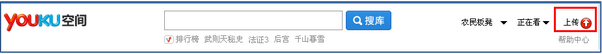 1. 登錄優酷, 點擊頁面的右方的紅色箭頭按鈕"上傳", 進入上傳界面。 (見下圖) 通過網頁上傳, 視頻文件大小不能超過200M。通過愛酷軟件上傳, 最大支持10G視頻。