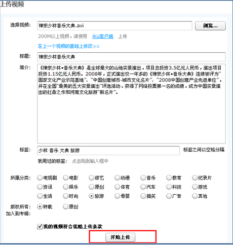 2.填寫完成, 點擊"開始上傳"按鈕。