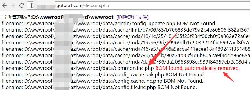 解決方法:下載bom清理工具到本地(下載驗證用戶名siteadmin密碼110),解壓出來,將delbom.php文件上傳至網(wǎng)站根目錄,然后訪問該文件即可自動清理,(www.xxx.com/delbom.php)如圖,